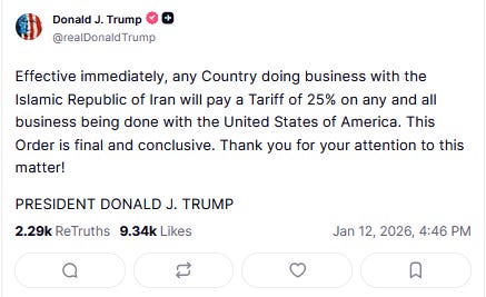 Trump Holds Air Force One Press Gaggle Amidst Growing Iran Protests, Powell Probe