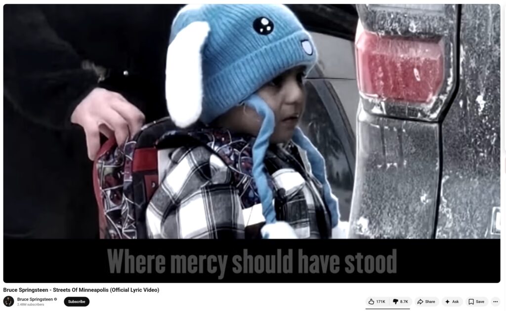 Springsteen promoted the song using the viral image of a five-year-old child — the same image pushed across social media with the false claim that ICE “arrested a kindergartner.”