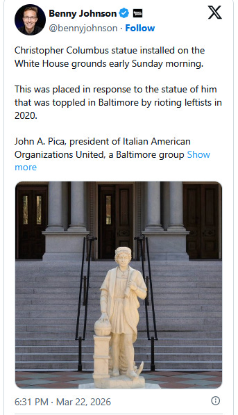 Trump places statue of Christopher Columbus near the White House