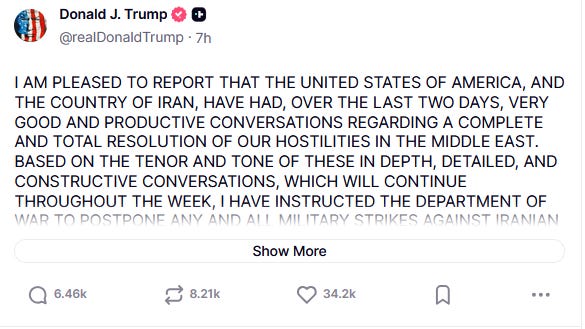 US Will Hold Off on Power Plant Strikes for 5 Days, Extending Trump Deadline on Strait of Hormuz